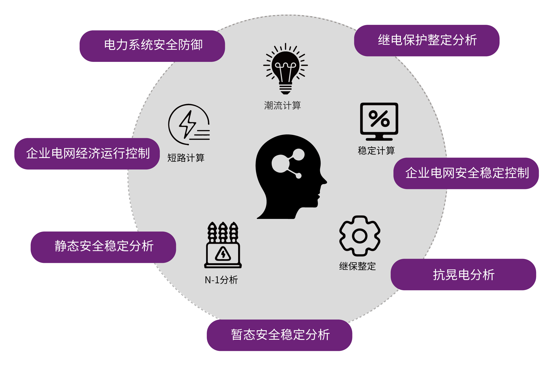 通過企業電網靜態安全分析、暫態安全分析、短路電流分析、繼電保護整定與校核等分析手段,進行電網結構治理、專項自動化系統建設、技術裝備升級等,實現企業電網的經濟運行控制與安全穩定控制,保障企業電網的安全、經濟、可靠運行。